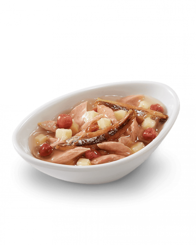 وصفة طبيعية مصنوعة من فيليه التونة اللذيذة ، ممزوجة مع البطاطا الحلوة والتوت البري ، المعروفين بخصائصهما المضادة للأكسدة ، في صلصة مخملية لا تقاوم ، والتي ستثير المزيد من رغبته في الحصول على مذاق طبيعي .